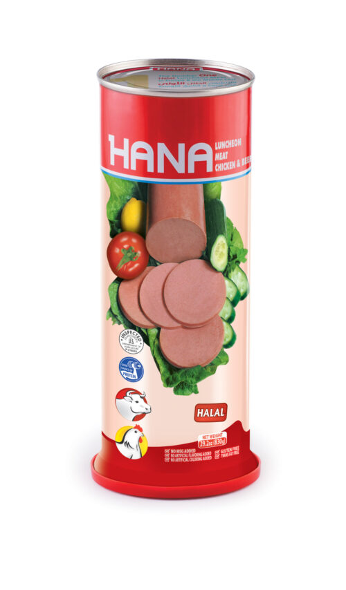 HANA Luncheon Meat Chicken & Beef, 830 Gr Rounded X 12